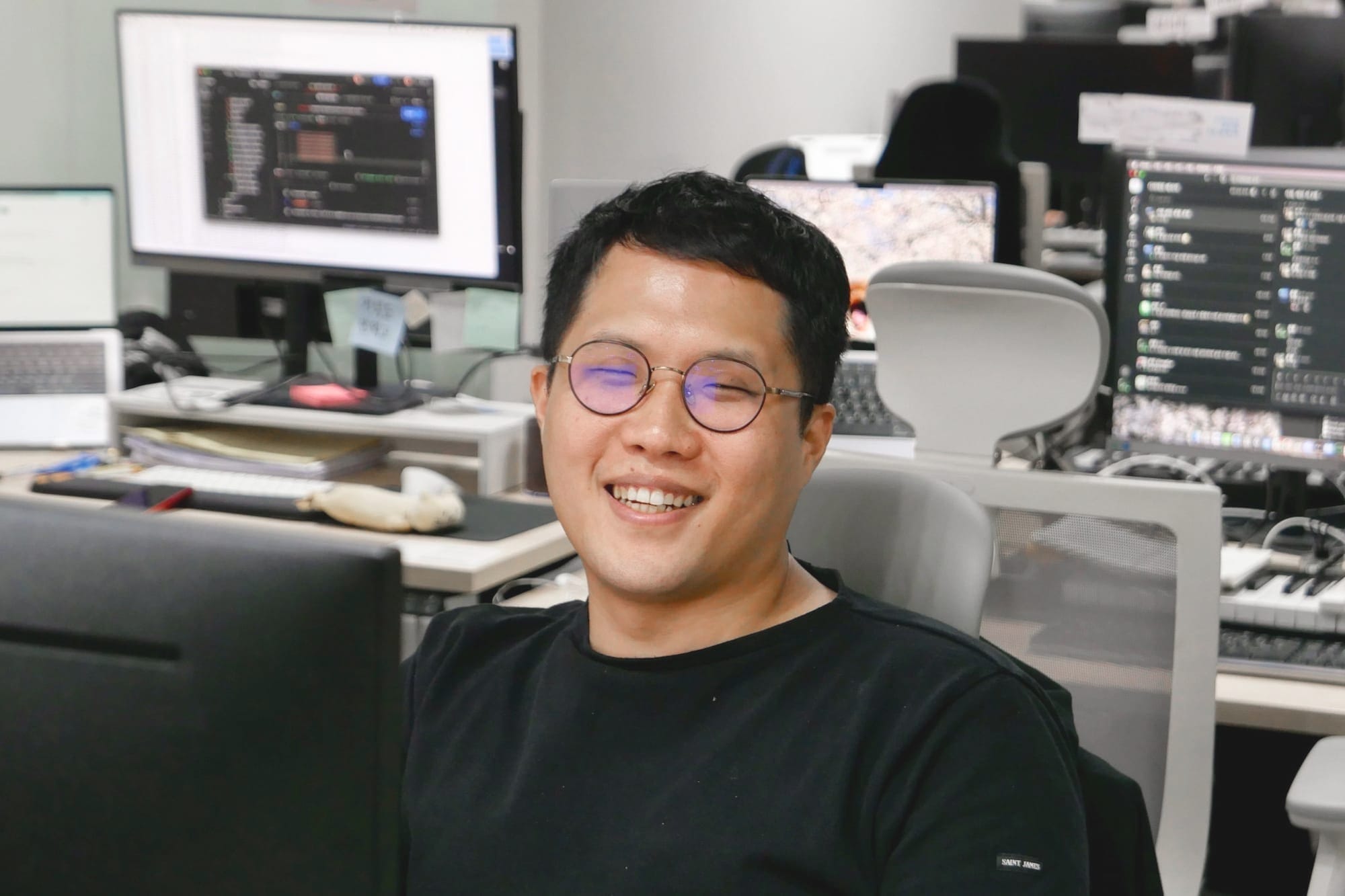 효섭: 코어플랫폼팀 PM 김효섭입니다. 작곡가로 입사했지만, 1년 전에 PM으로 직무를 변경했어요.